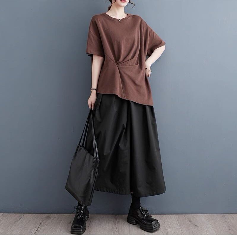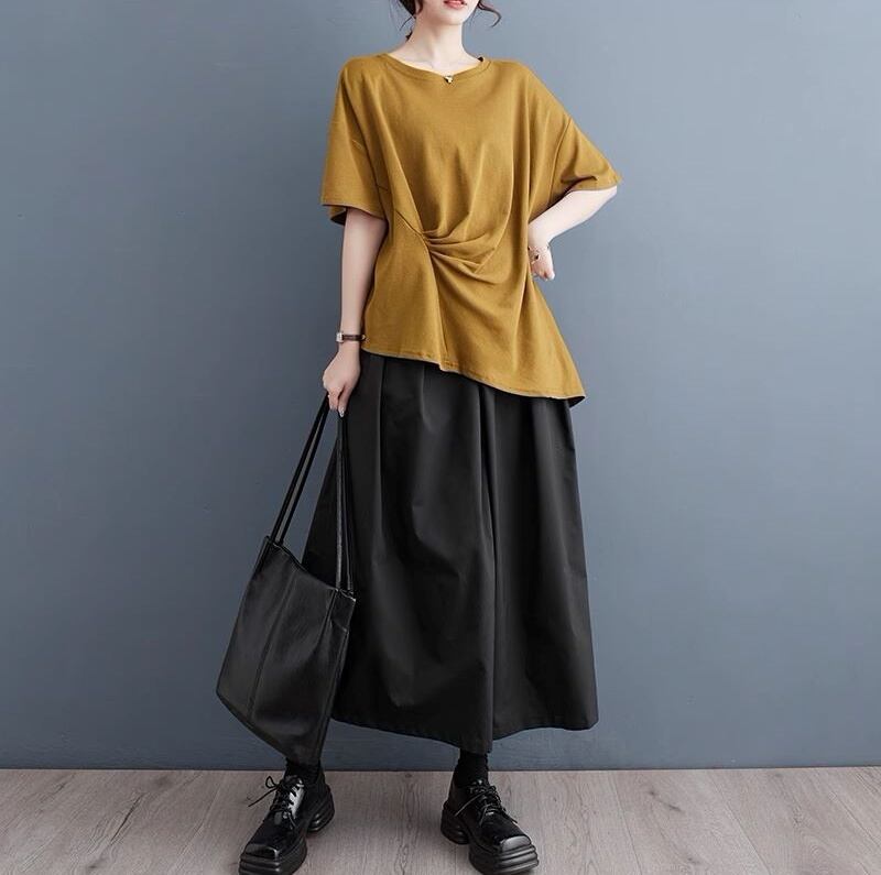 トップス Tシャツ 白トップス チュニック丈 袖あり 半袖 ラウンドネック 襟なし ワイド ねじり ギャザー イレギュラーヘム 薄手 大人可愛い シンプル カジュアル 大人 上品 お洒落 大人女子 こなれ感 ラフ ガーリー 個性的 主役級 抜け感 無地 春 夏 秋 20代 30代 40代 ママ 学生 通学 デート お出かけ 女子会 休日 旅行 着回し 普段使い 重ね着 楽ちん 体系カバー 定番 トレンド 流行 XL 2XL 3XL 4XL 大きいサイズ ゆったり ホワイト イエロー ブラウン ブラック