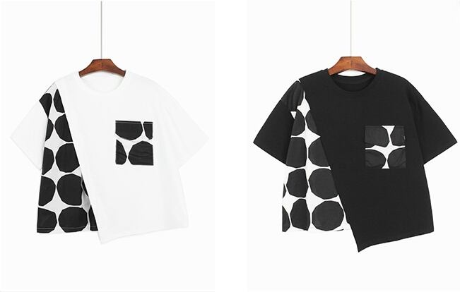 無地と柄の切り替えがお洒落な個性的デザインTシャツ。