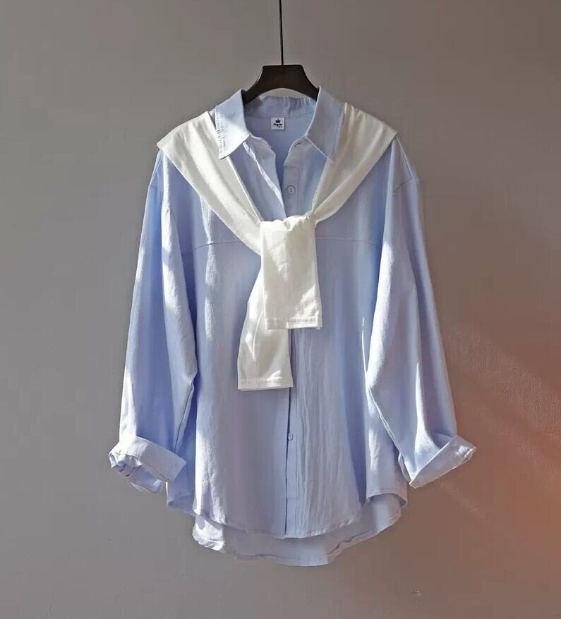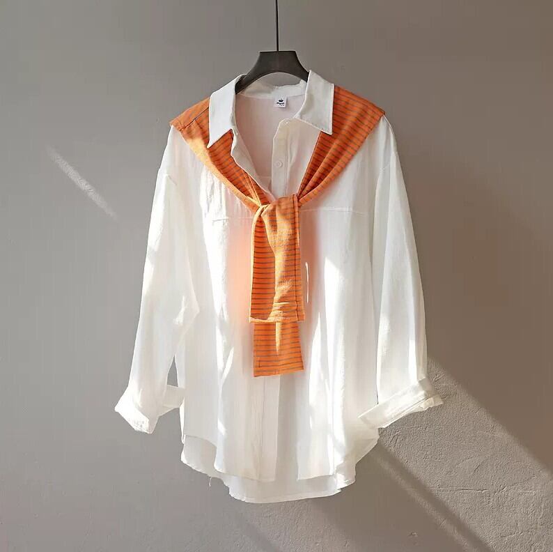 トップス シャツ 肩掛け風 白シャツ ベーシック 袖あり 七分袖 長袖 襟付き スリム ストレート 前開き 伸縮性 綿 薄手 コットン かわいい 可愛い きれいめ シンプル カジュアル 大人 おしゃれ お洒落 かっこいい レトロ 大人可愛い 大人女子 こなれ感 ラフ メンズライク 抜け感 無地 春 夏 秋 10代 20代 30代 40代 50代 60代 レディース 女性用 オフィス OL 通勤 学生 通学 お出かけ 休日 着回し 普段使い 楽ちん 白 ホワイト 青 ブルー 黄色 イエロー ピンク 春カラー