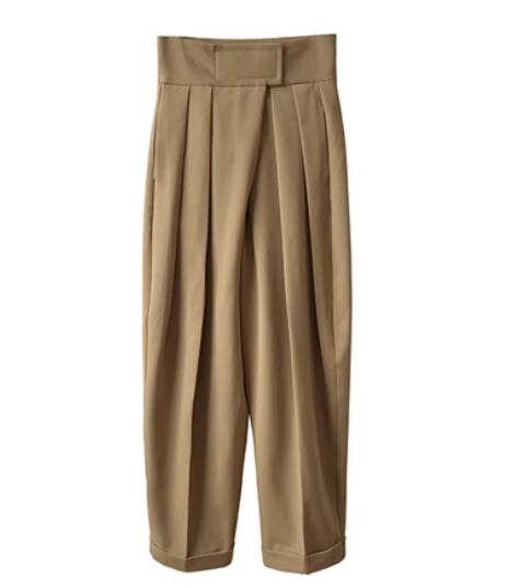 タックプリーツが施されたトレンド感満載のワイドパンツは、かわいさとシンプルさを兼ね備えています。カジュアルな着こなしからおしゃれなコーディネートまで、幅広いスタイリングが楽しめます。