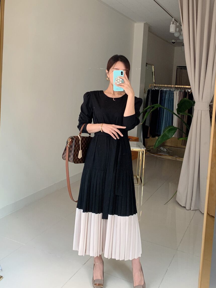 レディース ワンピース ミモレ ロング 長袖 ラウンドネック Aライン プリーツ ウエストリボン バイカラー 配色 かわいい 大人可愛い きれいめ シンプル 上品 おしゃれ レトロ こなれ感 ガーリー 個性的 エレガント モダン 主役級 存在感 ラブリー キュート おとな フェミニン 大人女子 無地 春 秋 授業参観 ママ オフィス OL 通勤 学生 学校 通学 デート お出かけ 旅行 レストラン 公園 女子会 休日 高原 ホテル ガーデン ショッピング 発表会 合コン コンパ カフェ 婚活 韓国 モテ