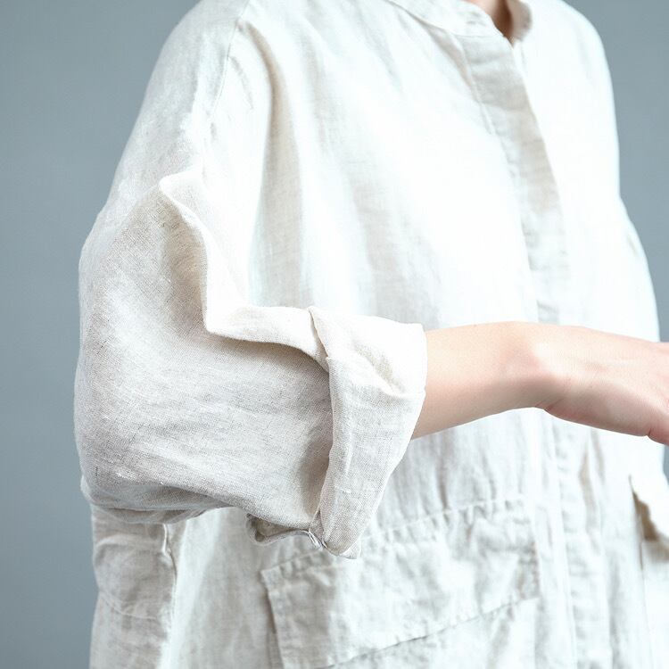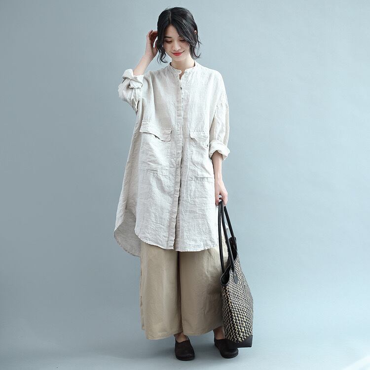 トレンド感溢れる大人可愛いミドル丈の長袖シャツです。ルーズなシルエットと前開きデザインで、トレンド感と女性らしさを兼ね備えています。また、ポケット付きで機能性も高く、さりげないアクセントにもなります。 薄手の綿リネン素材を使用しており、肌触りが良く涼しげな着心地です。大人女子にぴったりな上品でお洒落なデザインなので、OLの通勤スタイルやデート、お出かけ、女子会など様々なシーンに活躍します。