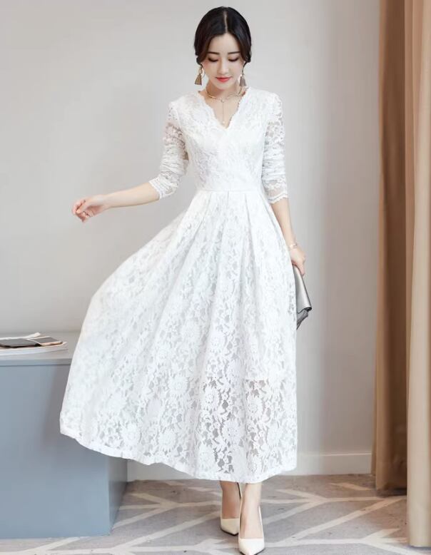 ドレス パーティー 結婚式 二次会 披露宴 演奏会 発表会 ステージ 舞台 フォーマル 謝恩会 演劇 ロング 長袖 Vネック フレア Aライン レース 切り替えデザイン 透け感 可愛い きれいめ シンプル 大人可愛い 上品 おしゃれ レトロ キュート ガーリー エレガント モダン 主役級 存在感 クラシック 清楚 ゴージャス シック 華やか イベント ホテル ガーデン レストラン 韓国 高見え 格上げ 女子会 春 秋 冬 2XL M L XL 体型カバー 白 黒 ピンク 水色 ホワイト ブラック ブルー