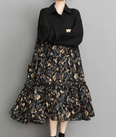 レディース ワンピース シャツワンピ ロング 長袖 襟付き 角襟 ワイド フレア Aライン オーバーサイズ プリーツ フリル 切り替えデザイン 大人可愛い きれいめ カジュアル 上品 おしゃれ かっこいい ラフ ガーリー ルーズ エレガント ラブリー キュート シック プリント 春 秋 10代 20代 30代 40代 デート お出かけ イベント 旅行 レストラン 女子会 休日 ショッピング カフェ 楽ちん 体型カバー 普段使い モテ L XL 大きいサイズ ゆったり 黒 ブラック