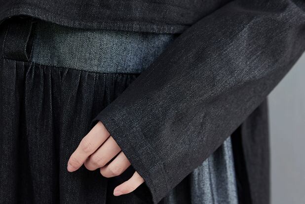 ゴシック調なデザインがクールでカッコいいシャツワンピース。デニム素材を使っているのもおしゃれです。歩くとまるでマントを着ているかのように靡く裾もエレガント。ウエスト部分をベルトでマークすることでスタイルよく見せてくれるのも嬉しいポイントです。トレンドの厚底ローファーや編み上げのショートブーツ、ブラックのハイカットスニーカーと相性抜群。ライブやフェスに着て行っても◎