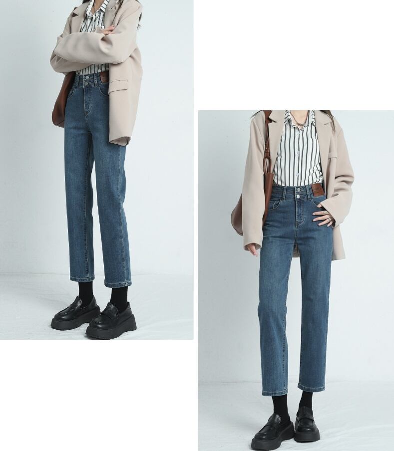 ボトムス パンツ ストレートパンツ デニムパンツ クロップドパンツ 9分丈 細身 ストレート ポケット ハイウエスト デニム 厚手 大人可愛い きれいめ シンプル カジュアル 大人 お洒落 ヴィンテージ レトロ 大人女子 こなれ感 ガーリー 主役級 抜け感 無地 春 秋 冬 20代 30代 40代 ママ 学生 通学 デート お出かけ 女子会 休日 旅行 着回し 普段使い 重ね着 コーデ 美脚 定番 トレンド 流行 インスタ映え XS S M L XL 2XL ブラック ブルーグレー レトロブルー