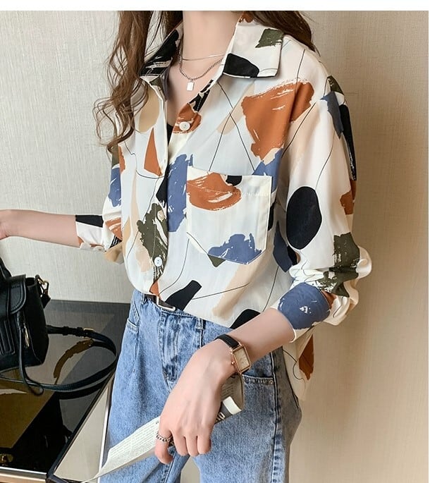 トップス シャツ 柄 柄シャツ ロールアップ 羽織 袖あり 長袖 襟付き ストレート 前開き 薄手 かわいい 可愛い きれいめ シンプル カジュアル 大人 上品 おしゃれ お洒落 かっこいい レトロ 大人可愛い 大人女子 こなれ感 ラフ メンズライク キュート 個性的 クール エレガント 主役級 抜け感 春 夏 秋 10代 20代 30代 40代 50代 60代 レディース 女性用 学生 通学 お出かけ 休日 旅行 着回し 普段使い 楽ちん 体系カバー S M L XL 2XL トレンド ルーズフィット