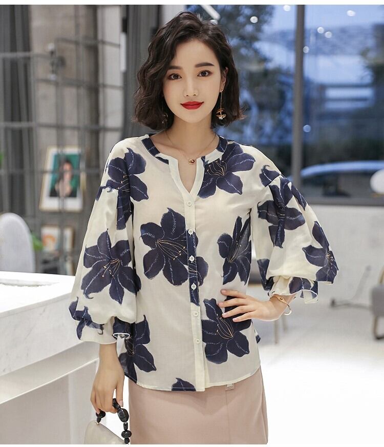トップス ブラウス ボリューム袖 フリル 花柄 柄 ふんわり 袖あり 七分袖 襟なし 伸縮性 薄手 かわいい 可愛い きれいめ シンプル 大人 上品 おしゃれ お洒落 かっこいい レトロ 大人可愛い 大人女子 こなれ感 ラブリー キュート ガーリー 個性的 セクシー エレガント 抜け感 春 夏 秋 10代 20代 30代 40代 50代 60代 レディース 女性用 オフィス ビジネス OL 通勤 デート 休日 着回し 普段使い モテ トレンド 流行 オフィスカジュアル S M L XL 2XL ゆる