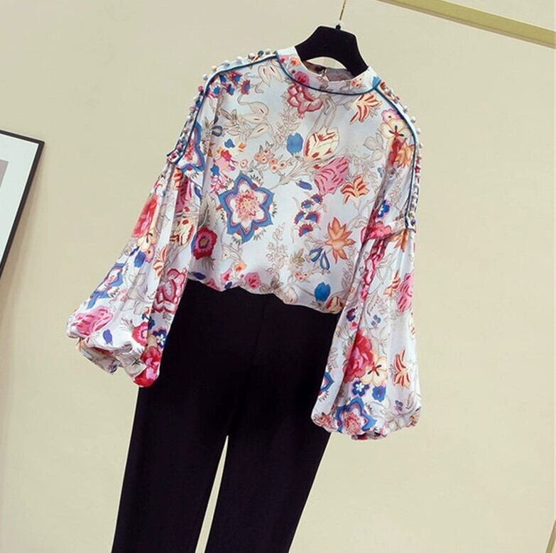 トップス ブラウス ボリューム袖 高級感 花柄 柄 スタンドカラー 袖あり 長袖 やわらか 伸縮性 薄手 かわいい 可愛い きれいめ シンプル 大人 上品 おしゃれ お洒落 かっこいい レトロ 大人可愛い 大人女子 こなれ感 ラブリー キュート ガーリー 個性的 チャイナ エレガント 抜け感 春 夏 秋 10代 20代 30代 40代 50代 60代 レディース 女性用 個性的 インスタ映え イベント 衣装 デート 休日 着回し 普段使い モテ トレンド 流行 M L XL 2XL こだわり 青 ピンク