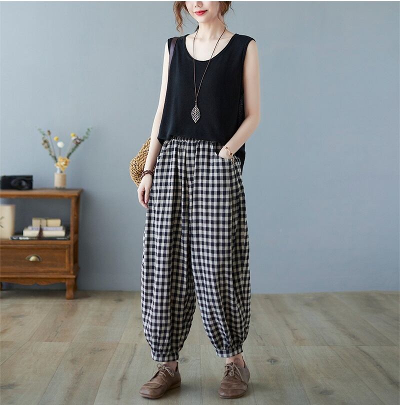 ボトムス パンツ ワイドパンツ アラジンパンツ サルエルパンツ 9分丈 ワイド ポケット ウエストゴム 伸縮性 綿 大人可愛い きれいめ シンプル カジュアル 大人 上品 お洒落 レトロ 大人女子 こなれ感 ラフ ガーリー ルーズ 主役級 存在感 抜け感 ギンガムチェック柄 春 夏 秋 20代 30代 40代 ママ 学生 通学 デート お出かけ 女子会 休日 旅行 着回し 普段使い 重ね着 韓国系 楽ちん 体系カバー 定番 トレンド 流行 インスタ映え L XL 2XL ゆったり ブラック レッド
