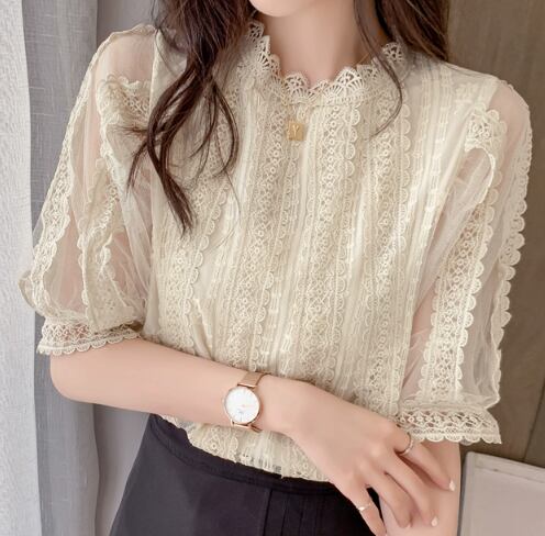 レディース トップス シャツ プルオーバー 半袖 レース袖 ハイネック レース襟 ストレート レース 刺繍 透け感 かわいい 大人可愛い きれいめ シンプル 上品 おしゃれ ガーリー エレガント ラブリー キュート クラシカル シック 高級感 無地 花柄 フラワー 夏 10代 20代 30代 OL 学生 デート お出かけ 旅行 海 レストラン 女子会 休日 ショッピング カフェ 楽ちん 体型カバー 普段使い 着回し モテ 清楚 S M L XL ゆったり 白 ホワイト アプリコット