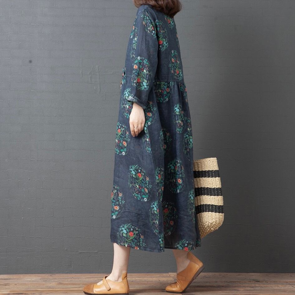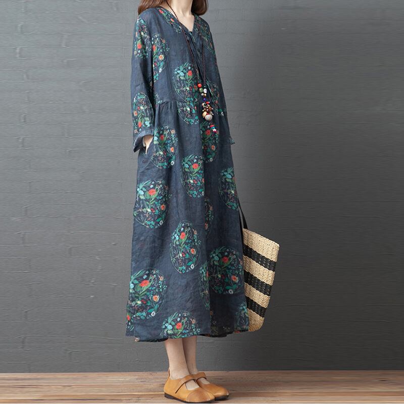 ワンピース ロング丈 袖あり 長袖 Vネック 襟なし ルーズ Aライン ふわふわ プルオーバー 綿 リネン 薄手 コットン 大人可愛い きれいめ シンプル カジュアル 大人 上品 お洒落 かっこいい レトロ 大人女子 こなれ感 ラフ クール モード系 エレガント モダン 主役級 存在感 とろみ感 抜け感 花柄 プリント 秋 20代 30代 40代 50代 60代 レディース お出かけ 休日 ショッピング 普段使い 韓国系 オルチャン コーデ 楽ちん トレンド 流行 M L XL 2XL グリーン ネイビー