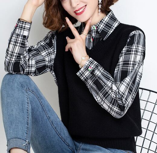 重ね着風 レディース トップス シャツ 7分袖 襟付き 角襟 ストレート かわいい 大人可愛い きれいめ カジュアル 上品 おしゃれ かっこいい レトロ クール エレガント 存在感 キュート カントリー ナチュラル シック タータンチェック 秋 ママ 30代 40代 50代 60代 OL デート お出かけ アウトドア キャンプ イベント 旅行 レストラン 公園 女子会 ショッピング カフェ 楽ちん 普段使い 着回し M L 黒 ブラック 黄色 イエロー ピンク レッド 緑 グリーン