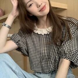 トップス ブラウス フリル襟 パフスリーブ ギンガムチェック 袖あり ボリューム袖 襟付き フリル 薄手 かわいい 可愛い きれいめ カジュアル 大人 上品 おしゃれ お洒落 レトロ 大人可愛い 大人女子 こなれ感 ラフ ラブリー キュート ガーリー 抜け感 チェック柄 春 夏 秋 10代 20代 30代 40代 50代 60代 レディース 女性用 学生 通学 デート お出かけ 休日 着回し 普段使い 楽ちん トレンド 流行 ゆったり ゆる ワンサイズ 半袖 黒 ブラック ふんわり やわらか ふりふり