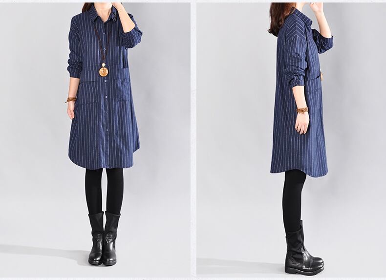 ワンピース シャツワンピース ミドル丈 袖あり 長袖 襟付き ルーズ ポロカラー ポケット 前開き 薄手 大人可愛い きれいめ シンプル カジュアル 大人 上品 お洒落 かっこいい レトロ 大人女子 こなれ感 ラフ クール モード系 モダン 主役級 存在感 とろみ感 抜け感 ストライプ 春 10代 20代 30代 レディース OL 通勤 デート お出かけ 女子会 お泊まり 休日 アウトドア 旅行 ショッピング 普段使い 韓国系 オルチャン トレンド 流行 M L XL 2XL 3XL 大きめ ネイビー