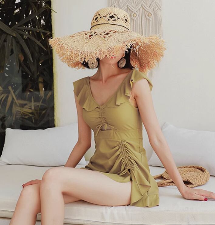 フェミニンで可愛らしい水着ワンピースが登場しました。フリルショルダーとリボンが女性らしさを引き立ててくれます。フリルとシャーリングが施されたデザインが、華やかさと上品さを演出してくれます。どんな場面でも使えるシンプルなデザインなので、カジュアルにもきれいめにもお洒落に決まります。