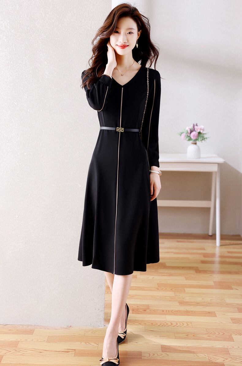 レディース ワンピース 膝丈 膝下 ミディアム 長袖 Vネック フレア Aライン バイカラー 配色 大人可愛い きれいめ シンプル 上品 おしゃれ レトロ 個性的 モード系 エレガント モダン 主役級 存在感 おとな フェミニン 大人女子 無地 春 秋 発表会 授業参観 ママ オフィス ビジネス OL 通勤 デート お出かけ レストラン 女子会 休日 ホテル ガーデン 合コン コンパ 婚活 韓国 コーデ 体型カバー 普段使い 着回し モテ M L XL 2XL 3XL 大きいサイズ ブラック ブラウン