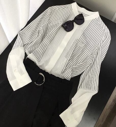 レディース トップス シャツ 長袖 スタンドカラー 切り替えデザイン ポケット バイカラー 薄手 大人可愛い きれいめ シンプル カジュアル 上品 おしゃれ かっこいい ラフ メンズライク ボーイッシュ ルーズ クール エレガント 存在感 清潔感 爽やか 涼しげ 無地 ストライプ 春 夏 会議 MTG ミーティング 20代 30代 40代 50代 60代 オフィス ビジネス OL 通勤 デート お出かけ 休日 体型カバー 普段使い 着回し 清楚 S M L XL ゆったり オーバーサイズ 白 ホワイト