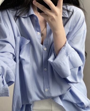 レディース トップス シャツ ロング 長袖 萌袖 襟付き 角襟 ストレート ポケット 前開き かわいい シンプル カジュアル おしゃれ ラフ メンズライク ボーイッシュ ルーズ キュート ベーシック リラックス 無地 春 秋 10代 20代 デート お出かけ イベント 旅行 海 休日 ショッピング コンサート ライブ お花見 カフェ 散歩 食べ歩き テーマパーク 遊園地 体型カバー 普段使い 着回し モテ S M L XL ゆったり オーバーサイズ 白 ホワイト 水色 ライトブルー