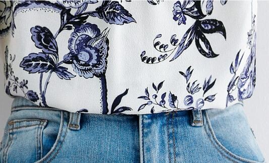 爽やかなホワイト×ブルーが目を引く半袖トップス。輪の雰囲気漂うボタニカル柄が大人可愛いです。袖部分のデザインも凝っていておしゃれ。細部にまでこだわった一枚になっています。ブルー系のボトムスを合わせて夏らしい涼しげなコーディネートに纏まるのも◎
