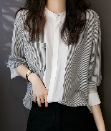 重ね着風 レディース トップス シャツ プルオーバー 5分袖 スタンドカラー ストレート ポケット 切り替えデザイン バイカラー カジュアル おしゃれ かっこいい ラフ メンズライク ボーイッシュ ルーズ 個性的 クール エレガント シック 春 秋 10代 20代 30代 40代 デート お出かけ イベント 旅行 レストラン 休日 ショッピング コンサート ライブ お花見 モノトーン 食べ歩き 楽ちん 体型カバー 普段使い 着回し M L XL ゆったり オーバーサイズ 白 ホワイト