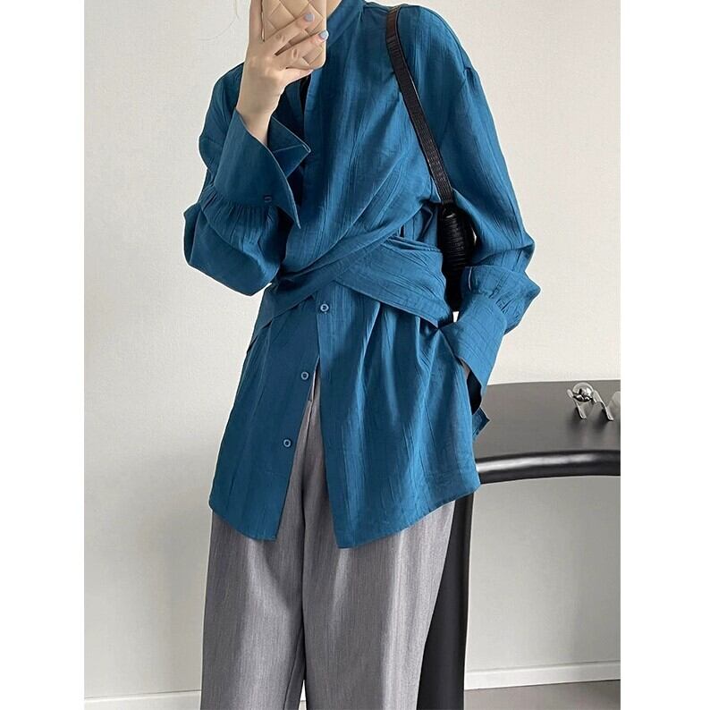 トップス シャツ 個性的 デザインシャツ 袖あり 長袖 ワイド ウエストマーク 前開き 薄手 かわいい 可愛い きれいめ シンプル カジュアル 大人 上品 おしゃれ お洒落 かっこいい レトロ アジアン 大人可愛い 大人女子 こなれ感 ラフ メンズライク ルーズ クール エレガント 主役級 存在感 抜け感 無地 春 秋 10代 20代 30代 40代 50代 60代 レディース 女性用 お出かけ 休日 イベント 着回し 普段使い スタイルアップ 楽ちん 体系カバー トレンド 流行 インスタ映え M L