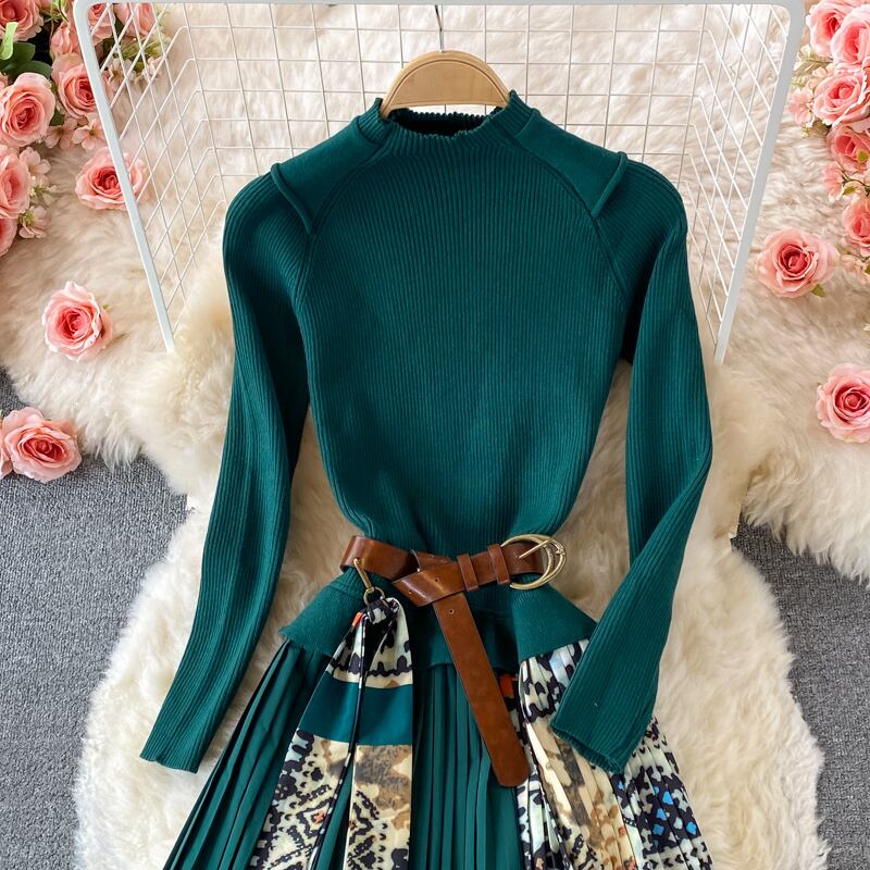 レディース ワンピース ミモレ 長袖 ハイネック Aライン 切り替え プリーツ ウエストマーク ニット かわいい 大人可愛い きれいめ 上品 おしゃれ レトロ アジアン エスニック こなれ感 個性的 エレガント モダン 主役級 存在感 ヴィンテージ おとな フェミニン 大人女子 秋 冬 授業参観 ママ オフィス ビジネス OL 通勤 学生 学校 通学 デート お出かけ 旅行 レストラン 女子会 休日 高原 ホテル ガーデン ショッピング 発表会 カフェ お呼ばれ お食事会 韓国 コーデ 体型カバー モテ