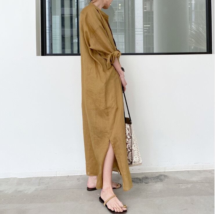 シンプルでありながら存在感を放つ長袖シャツワンピース。スタンドカラーやストレートなシルエットが、大人可愛い上品さを演出し、カジュアルなコーディネートからきれいめなスタイリングまで幅広く活躍します。さらに、ポケット付きの前開きデザインが機能性も兼ね備えています。素材には薄手の綿リネンを使用し、とろみ感がありながらもさらっとした着心地。デートやお出かけ、女子会やお泊りなど、様々なシーンで活躍するアイテムです。