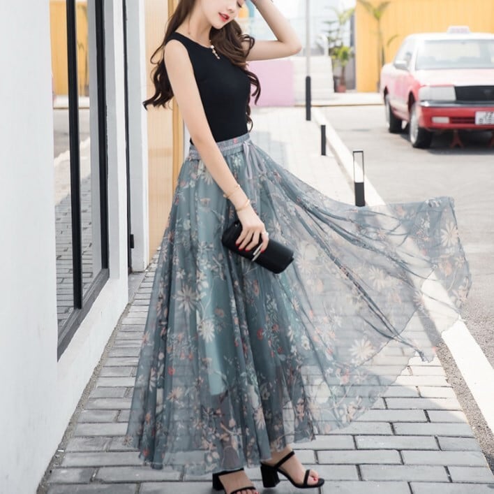 ボトムス スカート ロングスカート フレアスカート シースルー 透け感 ウエストリボン かわいい 大人可愛い シンプル カジュアル 大人 上品 おしゃれ お洒落 かっこいい レトロ 大人女子 こなれ感 キュート ガーリー 個性的 主役級 存在感 花柄 春 夏 10代 20代 30代 レディース 女性用 デート お出かけ 女子会 お泊まり 休日 着回普段使い 旅行 リゾート ショッピング ホテル レストラン パーティ 二次会 イベント M L XL 脚長 美脚 ファッション コーデ スタイル モテ