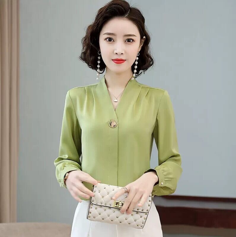 トップス ブラウス オフィスカジュアル 袖あり 長袖 Vネック 前開き 薄手 かわいい 可愛い きれいめ シンプル 大人 上品 おしゃれ お洒落 かっこいい 大人可愛い 大人女子 こなれ感 クール エレガント 抜け感 無地 春 秋 10代 20代 30代 40代 50代 60代 レディース 女性用 オフィス ビジネス OL 通勤 学生 通学 デート お出かけ 休日 お呼ばれ 着回し 普段使い モテ トレンド 流行 S M L XL 2XL 3XL 白 ホワイト 黒 ブラック 緑 グリーン ベージュ