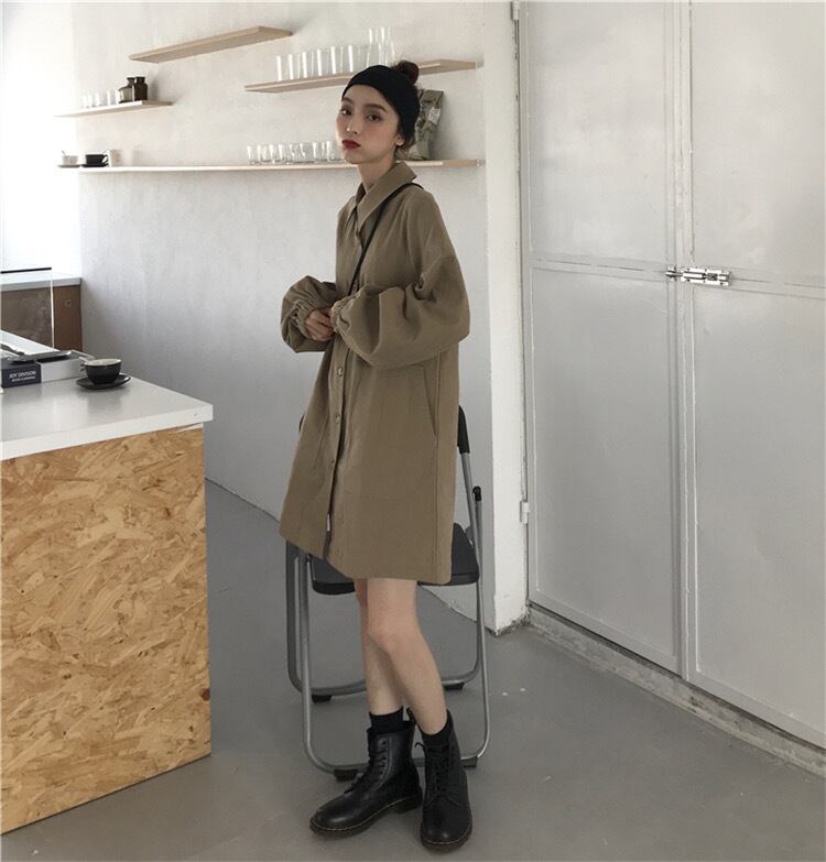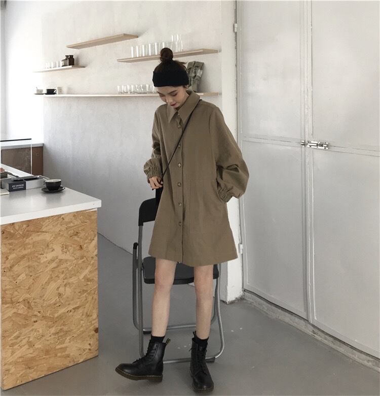 ワンピース シャツワンピース ミモレ丈 袖あり 長袖 襟付き ルーズ ポロカラー Aライン ポケット 前開き 大人可愛い きれいめ シンプル カジュアル 大人 上品 お洒落 かっこいい レトロ 大人女子 こなれ感 ラフ クール モダン 主役級 存在感 とろみ感 抜け感 無地 秋 10代 20代 30代 レディース OL 通勤 学生 通学 デート お出かけ 女子会 お泊まり 休日 ショッピング 普段使い 韓国系 オルチャン ファッション コーデ スタイル 楽ちん モテ トレンド 流行 ワンサイズ カーキ