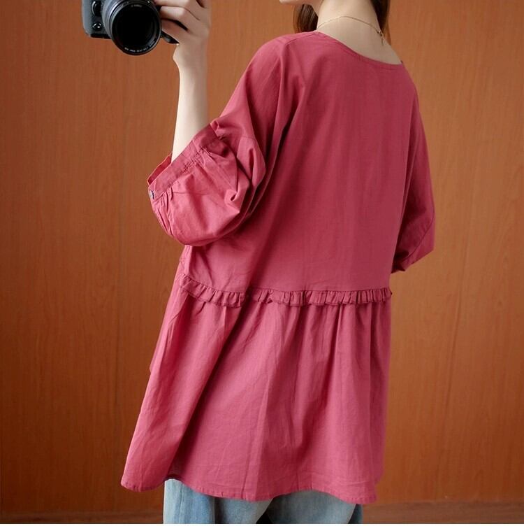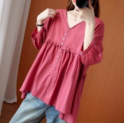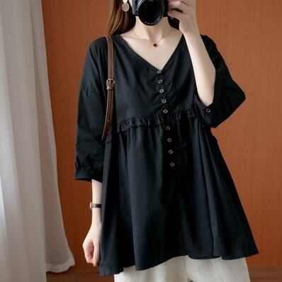 トップス ブラウス ドレープ 袖あり 7分袖 七分袖 Vネック 襟なし ワイド Aライン 綿 薄手 コットン かわいい 可愛い きれいめ シンプル カジュアル 大人 上品 おしゃれ お洒落 大人可愛い 大人女子 こなれ感 ラフ キュート 抜け感 無地 春 夏 秋 10代 20代 30代 40代 50代 60代 レディース 女性用 学生 通学 デート お出かけ 休日 着回し 普段使い 楽ちん モテ 体系カバー トレンド 流行 フリーサイズ ゆったり 白 ホワイト 黒 ブラック 赤 黄色 イエロー ピンク
