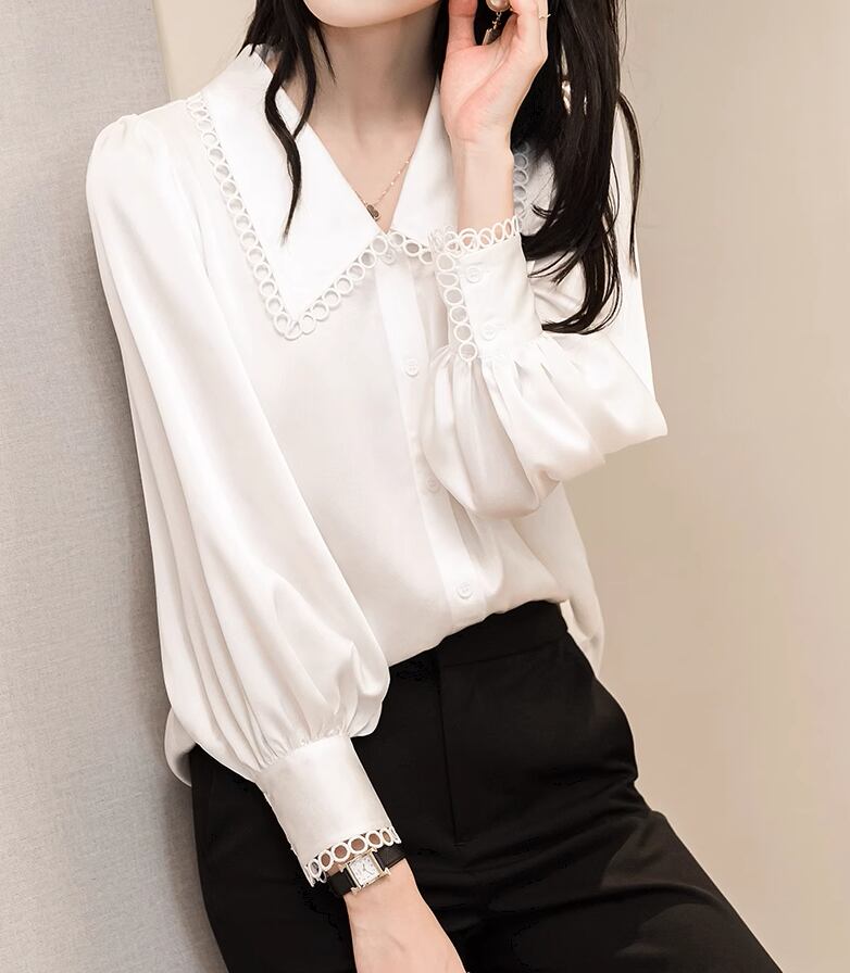 レディース トップス シャツ ミドル丈 長袖 カフスリーブ Vネック 襟付き ラペル ストレート 縁取りリング かわいい 大人可愛い きれいめ シンプル 上品 おしゃれ こなれ感 メンズライク ガーリー クール かっちり 無地 春 秋 オフィス ビジネス OL 通勤 デート お出かけ コーデ 楽ちん 体型カバー M L XL 2XL 3XL 白 ホワイト 黒 ブラック