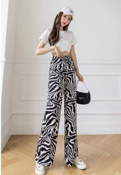 ボトムス パンツ ワイドパンツ ストレートパンツ カジュアルパンツ レギュラー丈 ストレート ワイド ハイウエスト ウエストゴム 薄手 エスニック エキゾチック こなれ感 個性的 とろみ感 柄 ヒョウ柄 レオパード セブラ柄 アニマル柄 リーフ柄 ボタニカル 春 夏 秋 10代 20代 レディース 学生 通学 お出かけ 休日 リゾート 普段使い お揃い 双子 韓国系 オルチャン 楽ちん 体系カバー 美脚 脚長 トレンド S M L XL 2XL 小さいサイズ 大きいサイズ ゆったり ブラック ホワイト