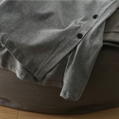 ゆったりとしたシルエットにサイドスリットとボタンのアクセントが加わり、抜け感のあるカジュアルなルームウェアとしておすすめです。