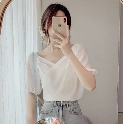 トップス ブラウス パフスリーブ デコルテ 鎖骨 袖あり 半袖 ボリューム袖 Vネック 襟なし スリム タイト 細身 薄手 かわいい 可愛い きれいめ 大人 上品 おしゃれ お洒落 大人可愛い 大人女子 こなれ感 ラブリー キュート クール セクシー エレガント 抜け感 無地 春 夏 10代 20代 30代 40代 50代 60代 レディース 女性用 デート お出かけ 休日 着回し 普段使い モテ トレンド 流行 S M L XL ジャスト 白 ホワイト 青 ブルー 黄色 イエロー 美人 透け感