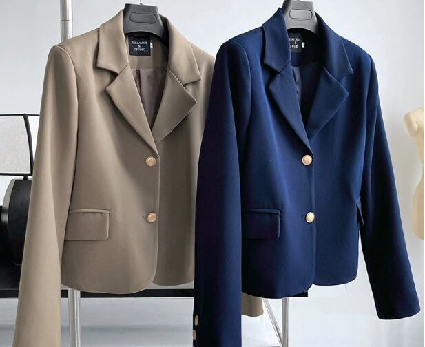 シックなカラーが大人可愛いショート丈ジャケット。金色のボタンがおしゃれでいいアクセントになっています。かっちりしすぎていない柔らかな生地感なので堅い雰囲気ではなく優しくて穏やかな印象にしてくれるアイテム。柄物のスカートやワンピースを合わせても可愛いです。