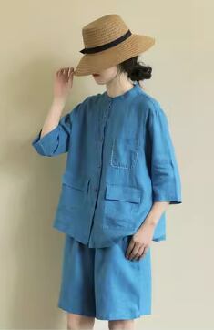 2点セット セットアップ シャツ ショートパンツ 膝上 袖あり 半袖 ヘンリーネック 襟なし 前開き ウエストゴム 麻 かわいい 大人可愛い シンプル カジュアル 大人 おしゃれ お洒落 かっこいい 大人可愛い 大人女子 こなれ感 ラフ ルーズ 個性的 抜け感 無地 夏 10代 20代 30代 40代 レディース 学生 通学 お出かけ 旅行 ショッピング 普段使い 韓国系 オルチャン ファッション 楽ちん 体系カバー トレンド M L XL 2XL 3XL 大きいサイズ ゆったり ブルー ピンク