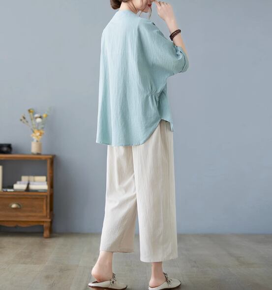 2点セット セットアップ ブラウス ストレートパンツ ガウチョパンツ 9分丈 袖あり 5分袖 ラウンドネック ヘンリーネック 襟なし ストレート ワイド ガウチョ ウエストゴム 綿 ポリエステル 大人可愛い 大人 上品 おしゃれ お洒落 大人女子 こなれ感 モダン とろみ感 無地 春 夏 秋 30代 40代 50代 60代 レディース お出かけ 旅行 韓国系 オルチャン ファッション スタイル 楽ちん 体系カバー 美脚 脚長 L XL 大きいサイズ ゆったり ライトブルー レッド イエロー ピンク