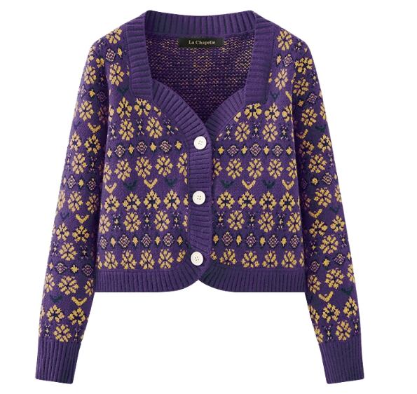 レディース トップス ニット カーディガン ショート 長袖 スカラップネック 異国風 かわいい 大人可愛い カジュアル 上品 おしゃれ 存在感 キュート カントリー ナチュラル シック 高級感 芸術的 ノルディック 秋 冬 クリスマス バレンタイン 10代 20代 30代 40代 デート お出かけ イベント 旅行 レストラン 休日 ショッピング コンサート ライブ カフェ 食べ歩き イルミネーション 重ね着 暖かい 防寒 普段使い 着回し フリーサイズ オフホワイト ライトブルー グリーン パープル