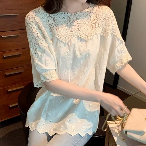 レディース トップス カットソー プルオーバー 半袖 5分袖 ラウンドネック フェミニン レース シフォン フリル 透かし編み かわいい 大人可愛い きれいめ シンプル カジュアル 上品 おしゃれ ガーリー ルーズ エレガント 存在感 ラブリー キュート 清潔感 シック 高級感 フェアリー 芸術的 涼しげ 優しい 花柄 フラワー 春 夏 10代 20代 30代 40代 デート お出かけ 旅行 休日 ショッピング 楽ちん 体型カバー 普段使い 着回し モテ 清楚 S M L XL ゆったり オフホワイト