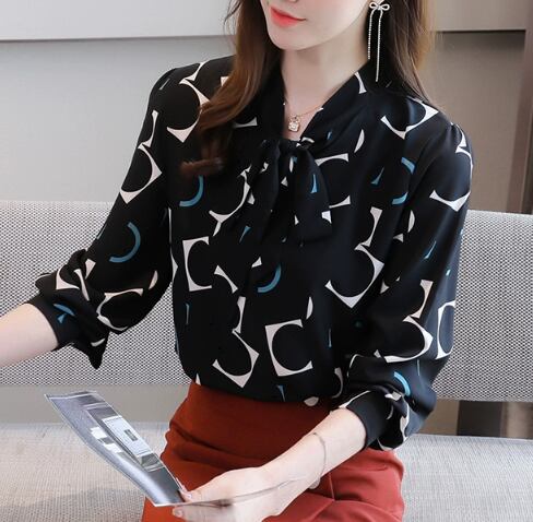 個性的な幾何学模様とシックなカラーが大人可愛い長袖シャツ。胸元を飾るリボンが女性らしくて可愛いです。存在感のあるトップスなのでシンプルなボトムスと相性抜群。ビジネスシーンでもプライベートでも着回し力抜群です。