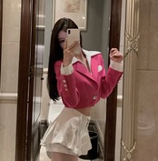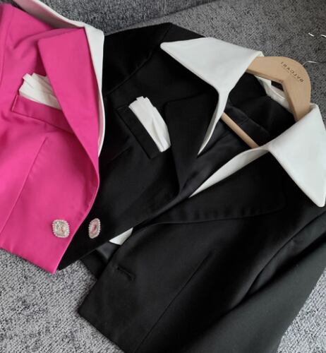 トップス ジャケット ショート丈 スーツジャケット 長袖 前開き ボタン 春秋 スリムフィット Vネック ハイエンド かわいい きれいめ 大人可愛い 上品 おしゃれ 大人女子 学生 通学 個性的 クール モード系 エレガント シック トレンディ ラグジュアリー デート お出かけ 休日 リゾート 旅行 レストラン スタイル 主役級 存在感 高級感 ゆったり フレンチ 体型カバー モテ 脚長 新作 インスタ映え サイズ S M L 色展開 ブラック ローズレッド 大人カラー コントラストカラー