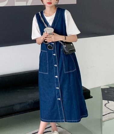 レディース ワンピース デニム ロング 袖なし Vネック ストレート ブルーデニム かわいい 大人可愛い シンプル カジュアル おしゃれ ラフ 存在感 キュート アメリカン カントリー ナチュラル 清潔感 爽やか シック 無地 春 夏 秋 10代 20代 30代 40代 デート お出かけ 旅行 海 レストラン 女子会 休日 ショッピング コンサート ライブ お花見 カフェ 図書館 散歩 食べ歩き テーマパーク 遊園地 重ね着 体型カバー 普段使い 着回し 定番 S M L XL ゆったり ブルー