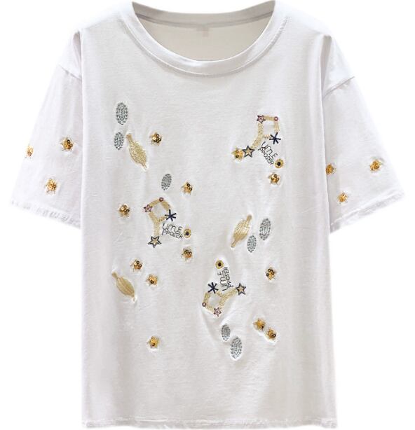 レディース トップス ルームウェア カットソー 半袖 5分袖 ラウンドネック ストリート 刺繍 カジュアル おしゃれ かっこいい こなれ感 ラフ メンズライク マニッシュ ボーイッシュ ルーズ カレッジ風 学生風 星柄 春 夏 秋 ロングシーズン ペア 男女兼用 ユニセックス ママ マタニティ 学生 学校 通学 部活 デート お出かけ アウトドア キャンプ イベント 休日 ライブ フェス 重ね着 普段使い 着回し レイヤード M L XL 2XL 3XL 大きいサイズ ビッグ ゆったり ゆる 白 ホワイト