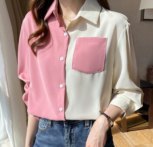 レディース トップス シャツ 長袖 襟付き 角襟 シフォン ポケット 前開き かわいい 大人可愛い シンプル カジュアル おしゃれ こなれ感 個性的 クール 存在感 とろみ感 キュート ナチュラル 清潔感 爽やか 高級感 優しい 無地 春 秋 20代 30代 40代 オフィス OL デート お出かけ 旅行 レストラン 休日 ショッピング コンサート ライブ お花見 カフェ 食べ歩き 水族館 体型カバー 普段使い 着回し S M L XL ゆったり ピンク バイカラー グリーン コントラストカラー