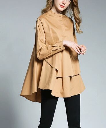 レディース トップス シャツ プルオーバー ミドル丈 長袖 スタンドカラー 裾ワイド プリーツ フリル 異国風 切り替えデザイン 大人可愛い きれいめ カジュアル 上品 おしゃれ かっこいい こなれ感 個性的 クール エレガント 存在感 キュート ラグジュアリー ナチュラル 華やか シック 高級感 芸術的 控えめ 優しい 無地 春 秋 20代 30代 40代 50代 60代 デート お出かけ 休日 お花見 体型カバー 普段使い 着回し L XL 2XL 3XL 大きいサイズ ゆったり ベージュ