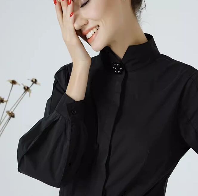 レディース シャツ ブラウス 長袖 スタンドカラー スリム 細身 ストレート フェミニン ボタン 薄手 ビジュー コットン 大人可愛い きれいめ 上品 エレガント フォーマル 都会的 ラグジュアリー 春 秋 冬 オールシーズン 入学式 卒業式 冠婚葬祭 母の日 授業参観 会議 MTG ミーティング プレゼン ママ オフィス ビジネス OL 学生 お出かけ イベント 女子会 就活 ホテル コンサート 合コン コンパ カフェ 清楚 S M L XL 2XL 3XL 4XL ホワイト ブラック ピンク レッド