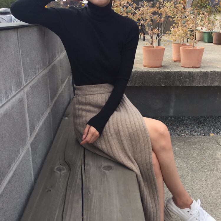 アシンメトリーなスリット入りで動きやすく、大人セクシーなリブニットスカート。