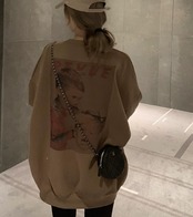 だぼっとしたオーバーサイズが可愛い長袖プルオーバー。一枚で着ても可愛いですがショートパンツや細身のボトムスを合わせても◎バックプリントもあるので後ろ姿もクールです。
